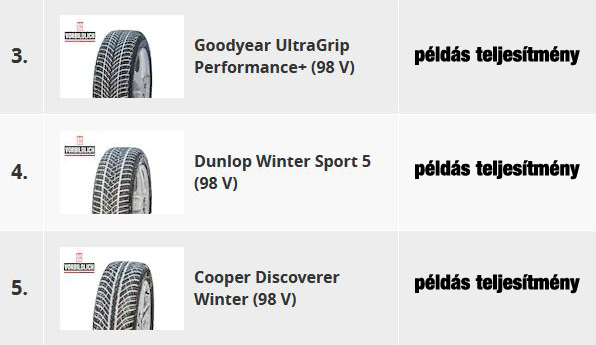 A két kiemelkedően teljesítő győztest a „Példás” besorolást kapott abroncsok követik, amelyek közt a Goodyear UltraGrip Performance+, a Dunlop Winter Sport 5 (98 V) és a Cooper Discoverer Winter téli abroncsok is megtalálhatól. Ezek a gumik szintén nagyon jó választást jelentenek, és a szakértők továbbra is bátran ajánlják őket azoknak az autósoknak, akiknek a teljesítmény mellett a maximális biztonság is fontos.